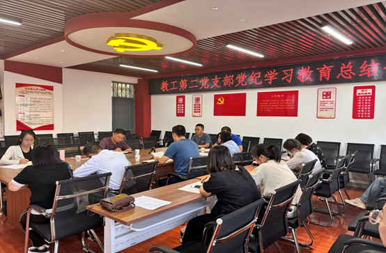 会上,集体学习了习近平总书记关于党纪学习教育的重要讲话和重要指示精神,胡静波就教工第二党支部党纪学习教育成效进行了汇报。自开展党纪学习教育以来,教工第二党支部严格按照工作安排落实,将党纪学习教育注重融入日常、抓在经常。一是通过采取“三会一课”、主题党日等形式,以学习《中国共产党纪律处分条例》为主题, 组织全体党员教师认真学习《中国共产党纪律处分条例》等党纪法规,做到学纪、知纪、明纪、守纪,把遵规守纪刻印在心,内化为言行;二是组织党员教师利用网络平台开展线上学习,分享学习心得和体会;三是组织观看警示教育片深刻剖析违纪典型案例,以案为鉴、以案促改,引导党员教师时刻保持警醒和敬畏之心。坚持个人自学与集中学习相结合,增强党员教师的党性观念和纪律意识,确保党纪学习教育走深走实。随后,多位党员教师代表结合个人学习体会和工作实际,进行了交流发言。他们纷纷表示,通过此次党纪学习教育,深刻认识到了党纪学习教育在全面从严治党和推进公司事业高质量发展上的重大意义,在以后的工作中会更加坚定履行教书育人的职责使命,进一步强化纪律意识,增强政治定力、纪律定力、道德定力、抵腐定力。
