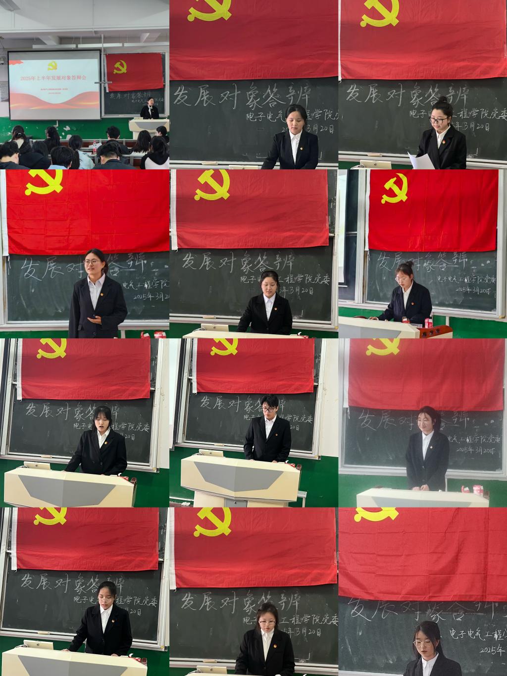 本次拟发展对象答辩会着重从对党的认识、入党动机、理论素养、学习情况、服务师生、志愿服务、群众满意度等方面进行考察。答辩会上,拟发展对象依次上台进行答辩。他们从学习党的二十届三中全会精神情况、参加“星火班”和青年夜校情况、学习成绩及排名情况、参与公司和班级各项工作活动情况、联系服务身边同学情况、担任职务和获奖情况等六个方面进行了汇报展示。同时结合自身的学习、生活和社会实践经历,以“如果我是一名党员”为题开展了主题演讲,深刻剖析了自己的入党动机、对党的理解和入党后如何争做一名合格党员,进一步明确了自身的不足,并对未来的发展做出了具体的改进与规划。