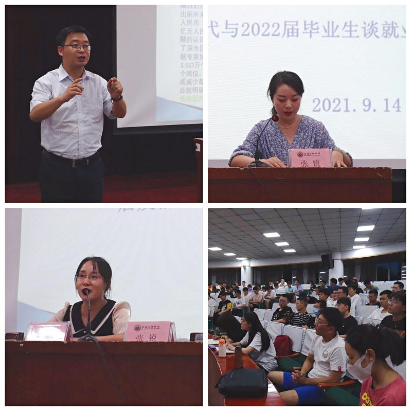 张锐对同学们如何就业提供了三点建议与经验:一是要认识到目前是求职就业的黄金时期,要充分做好各项准备工作;二是要转变就业观念,树立先就业后择业的理念;三是要遵守校纪校规,注意求职中的人身安全和信息安全。