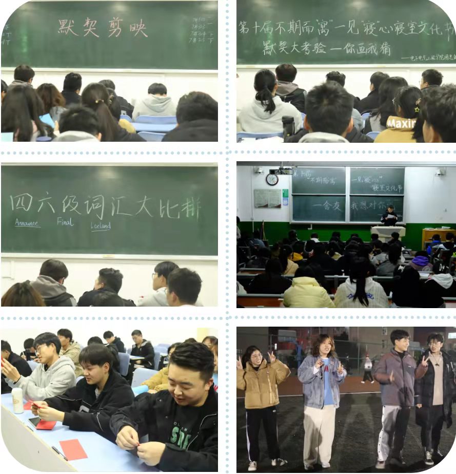 在为期一个月的文化节中,先后举办“党史进宿舍”提升同学们对党的认识,使党史教育入脑入心;“四六级词汇大PK”,培养同学们对英语的学习兴趣,激发潜能;“默契大考验之你画我猜、默契剪映、信任之跃”等,增强舍友之间的默契感与信任度;“宪法进宿舍”,进一步学习习近平法治精神,加强同学们对宪法的深刻认识;“舍友,我想对你说”,以诙谐幽默方式匿名表达出同学们心声,增进舍友之间的感情交流。