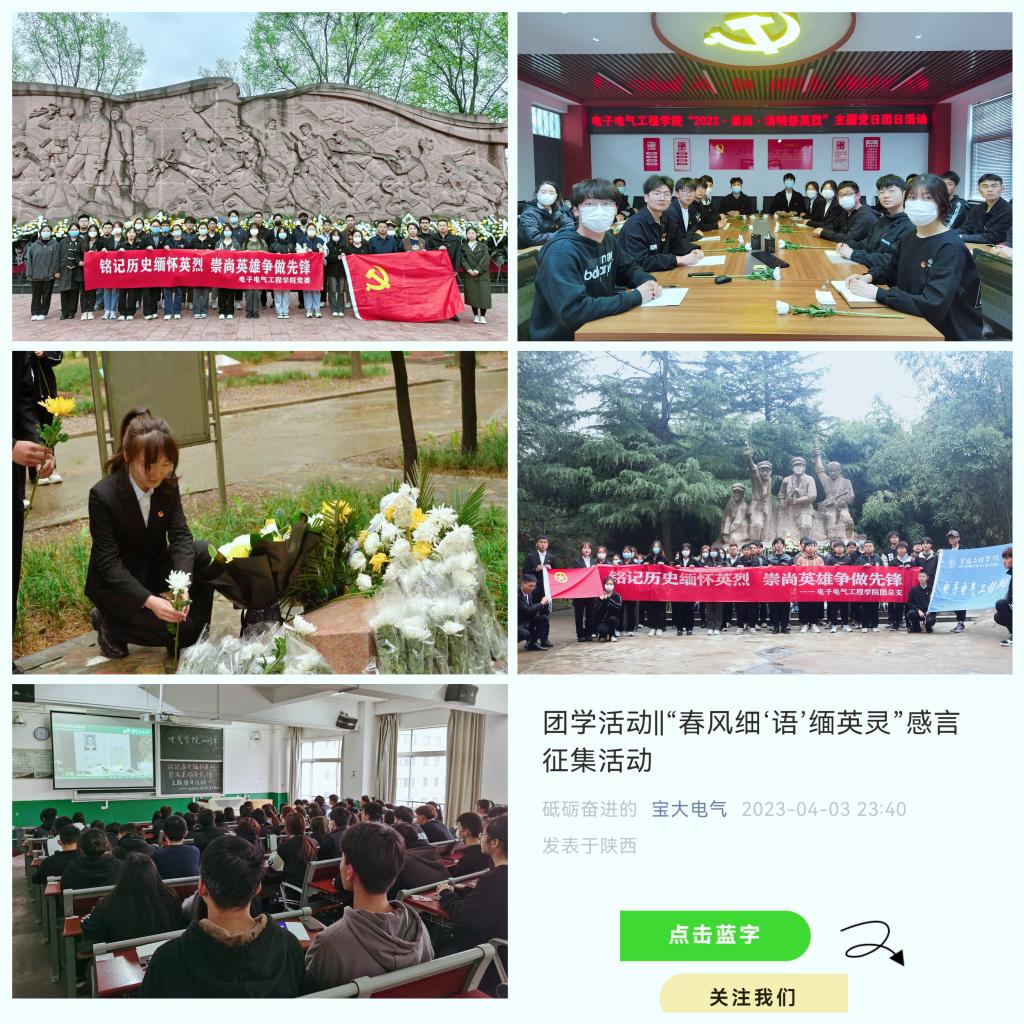 四是举行网络祭奠,传承革命精神。在公司党委的指导下,公司团总支积极组织开展“网上祭英烈”主题活动,鼓励电气学子做文明祭扫英烈活动的践行者、数字化缅怀英烈的先行者,通过网上向英烈献花、点烛、进入英烈纪念馆查询并学习英烈事迹,表达对英烈的敬仰和缅怀之情。同时,各团支部在团总支的指导下,开展了一系列形式多样的云端祭奠活动。
