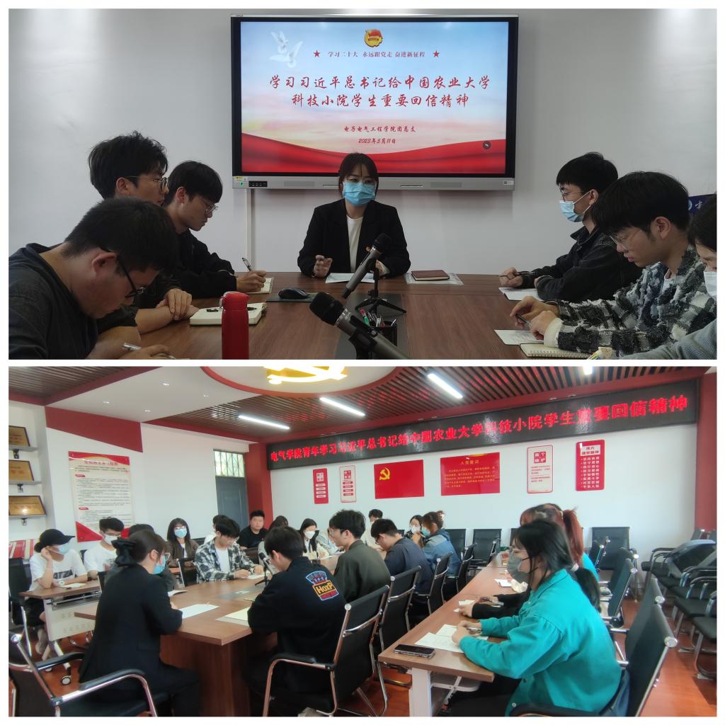 近日,习近平总书记给中国农业大学科技小院的同学们回信,并对广大青年提出殷切希望。习近平总书记在回信中指出,广大青年要志存高远,脚踏实地,要有“自讨苦吃”的精气神,为全面建设社会主义现代化国家贡献青春力量。5月11日中午,电气公司团总支组织召开了学习习近平总书记给中国农业大学科技小院的员工回信精神交流会。团学骨干代表、优秀志愿者代表、星火班学员代表及班团支部团员青年代表参加了会议。会议由团总支书记李倩主持。