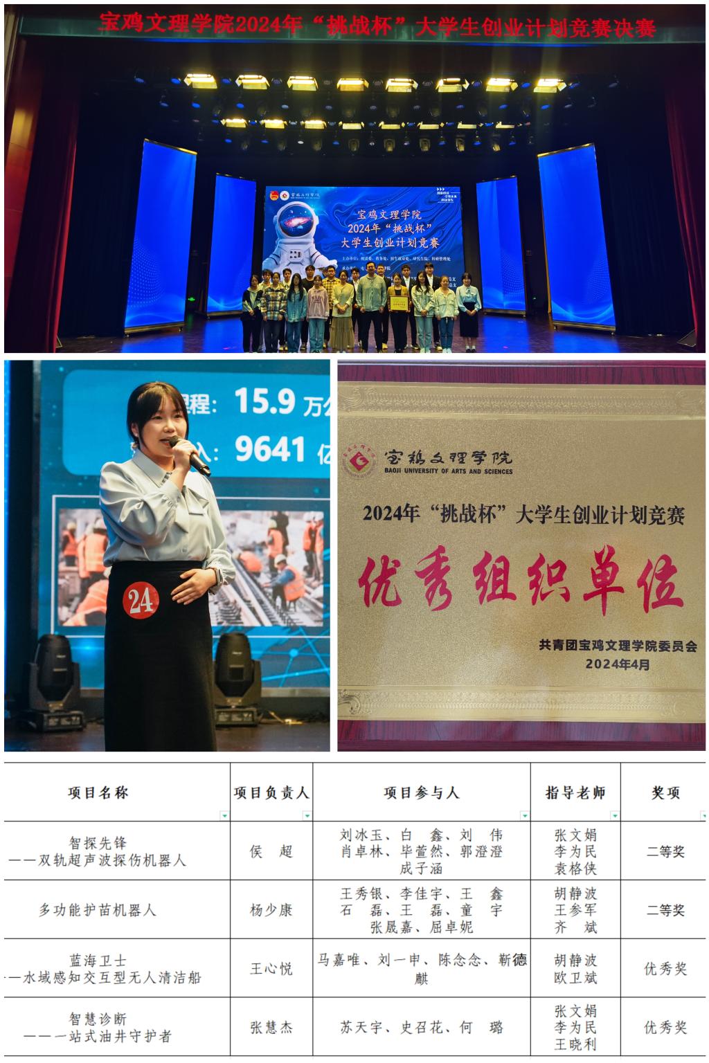 在本次“挑战杯”院赛初赛和校级复赛选拔过程中,公司的众多优秀队伍展现出了非凡的实力和创新精神。经过激烈的竞争,最终有4支队伍脱颖而出,成功入围校级决赛。经过激烈角逐,公司参赛作品《智探先锋——双轨超声波探伤机器人》《多功能护苗机器人》荣获二等奖,《蓝海卫士——水域感知交互型无人清洁船》《智慧诊断——一站式油井守护者》荣获优秀奖,公司团总支荣获“优秀组织单位”荣誉称号。