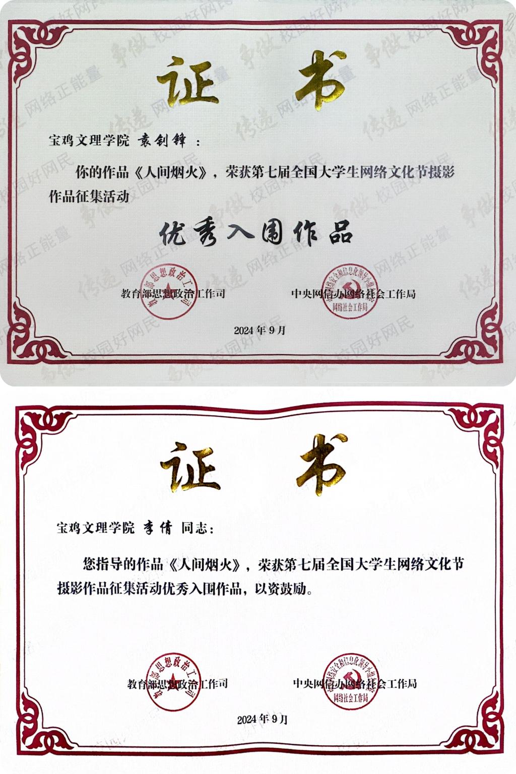 近日,教育部思想政治工作司、中央网信办网络社会工作局主办的第七届全国老员工网络文化节推选展示活动获奖名单公布,公司2020级通信工程专业2班袁钊锋创作的摄影作品《人间烟火》(指导老师:李倩)从全国31个省(区、市)和新疆生产建设兵团所推荐的50771件作品中脱颖而出,入选第七届全国老员工网络文化节推选展示名单,荣获摄影“优秀入围作品”。