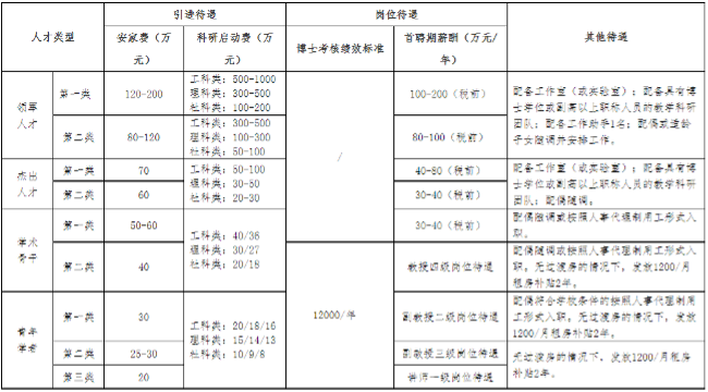1.以团队形式引进的博士(3人以上且均为博士),可按照同层次增加30%安家费,科研启动费另行商定。