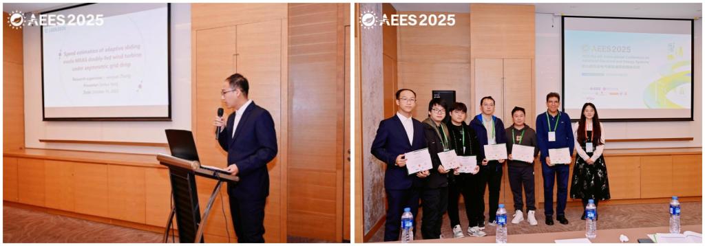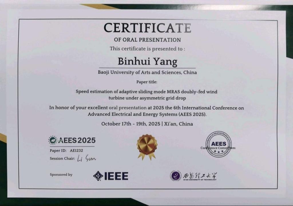 张文娟教授指导的研究生杨博宇、杨秉辉提交的论文《Speed estimation of adaptive sliding mode MRAS doubly-fed wind turbine under asymmetric grid drop》,经专家严格初审与复审后,成功入选AEES会议报告。杨秉辉在小组发言环节中,清晰阐述了研究成果的核心内容与创新点,并与会议专家展开深入交流研讨,充分展现了公司研究生在学术研究中的创新能力与实践水平。